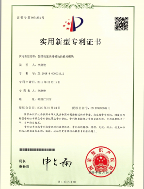 특허증 - 레벨 조절 및 충격 흡수가 가능한 우드블럭 모듈